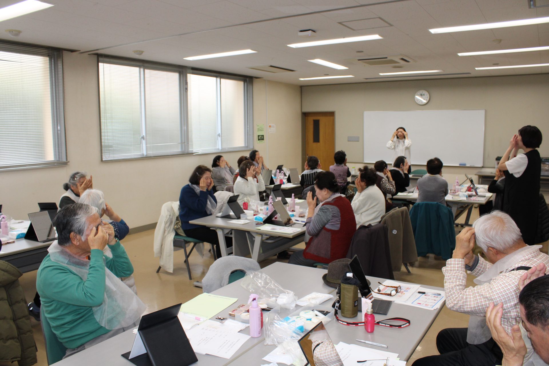 1月28日(水)、資生堂ジャパン株式会社から講師をお招きし、自分でできる簡単な美容法について学びました。 沢山の笑顔がみられ、楽しく学ぶことができたと好評でした。 長寿会では年間を通して、様々なイベントを企画しており、一緒に活動してくださる会員を募集しております。 興味のある方は、事務局(伊奈町社会福祉協議会☎048-722-9990)までお問合せください。